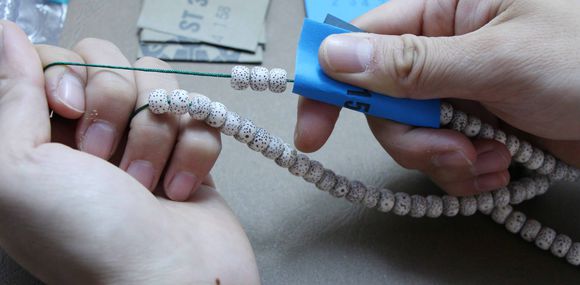 具体做法就是:将珠子拆散,然后一颗一颗捻着在抛光条或者抛光板上均匀地摩擦;等到所有珠子都打磨完之后再穿起来,戴上棉手套用掌心部位撸一撸,很快珠子就会呈现出明显的光泽。
