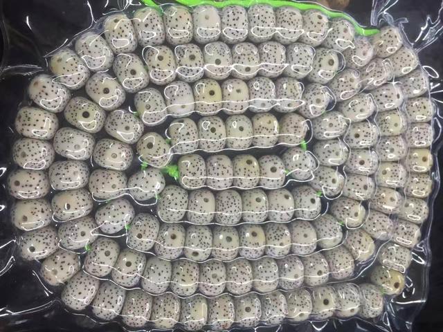 真空塑封的星月,一旦不小心漏气,珠子局部发生氧化而发黄,整体品相要大打折扣,商家只能做降价处理。